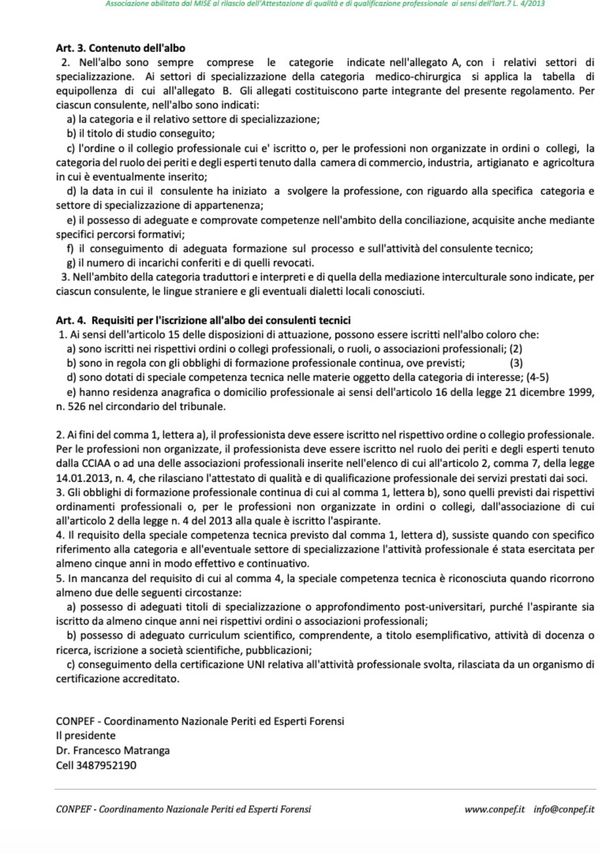 delle diverse categorie professionali dei Periti e degli Esperti Forensi, con riferimento alla legge